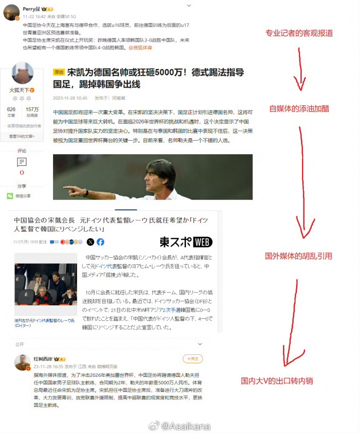 王晓瑞:韩国媒体的爆料基本都是援引“中国自媒体”。某门户自媒体天天编造假新闻,关键是国内圈里人都知道这不靠谱,韩国记者们都信以为真,然后援引中国自媒体在那加工版胡编滥造,然后中国球迷看到韩国媒体撰文,又以为是韩国媒体爆料,殊不知是以讹传讹。关键是这种事根本没有人管,前几天韩国媒体还在那YY某中国国脚打假球,结果仔细一看还是援引中国自媒体的胡编。对此现象,只能四字总结:“太丢人了”,而且非常影响国际形象,关键还都是无中生有的事情,真是得需要有人管一管。